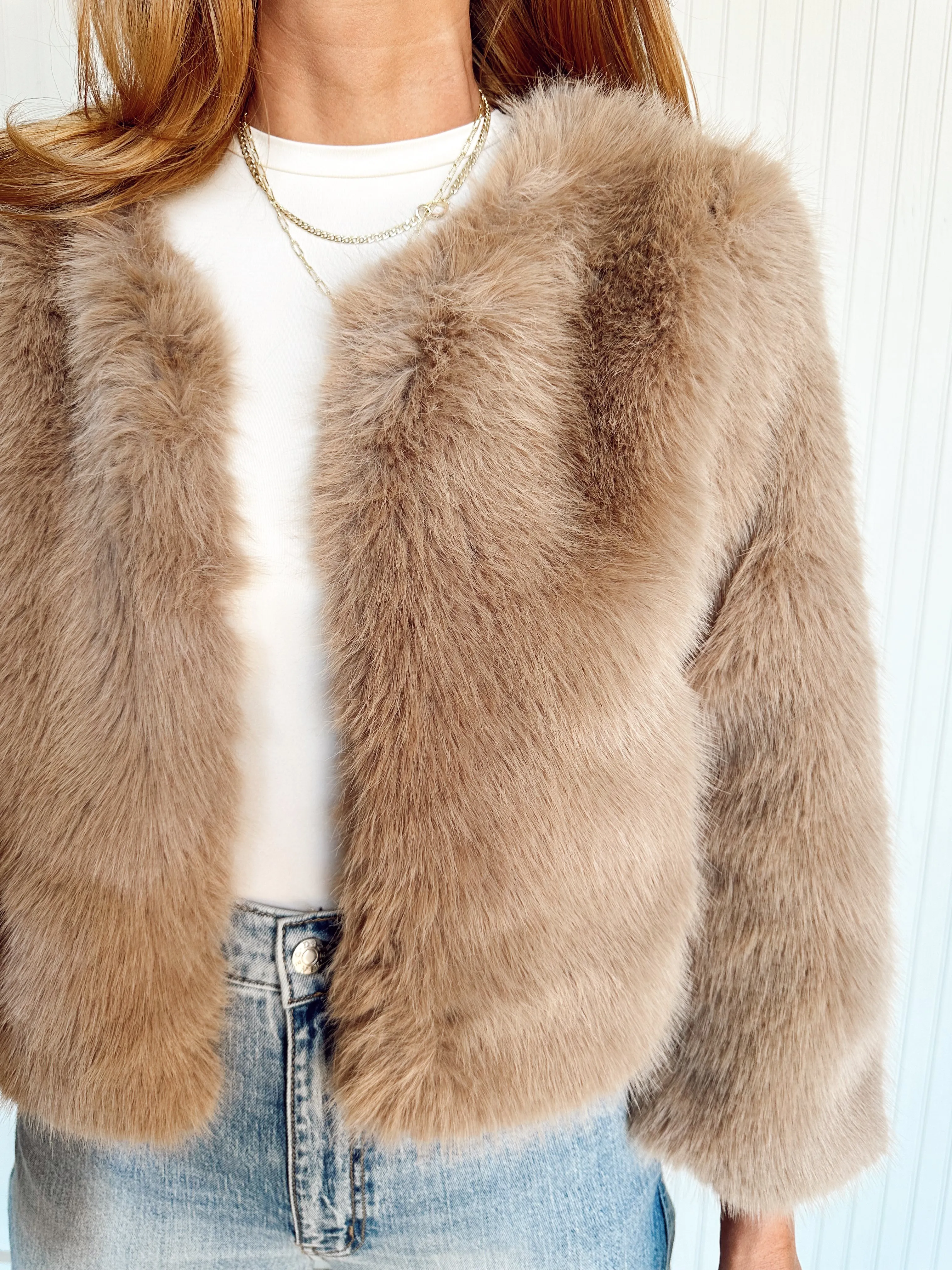 +The Felicity Fur Jacket is the epitome of cozy glam, wrapping you in luxurious warmth while adding an instant touch of sophistication to any outfit! Made from ultra-soft faux fur, this jacket features a plush, fluffy texture and a sleek, cropped silhouette that’s as stylish as it is comfortable. For a chic, winter-ready look, pair it with a fitted turtleneck, high-waisted leather pants, and statement boots, or throw it over a sleek dress and heels for an effortlessly glamorous evening ensemble.